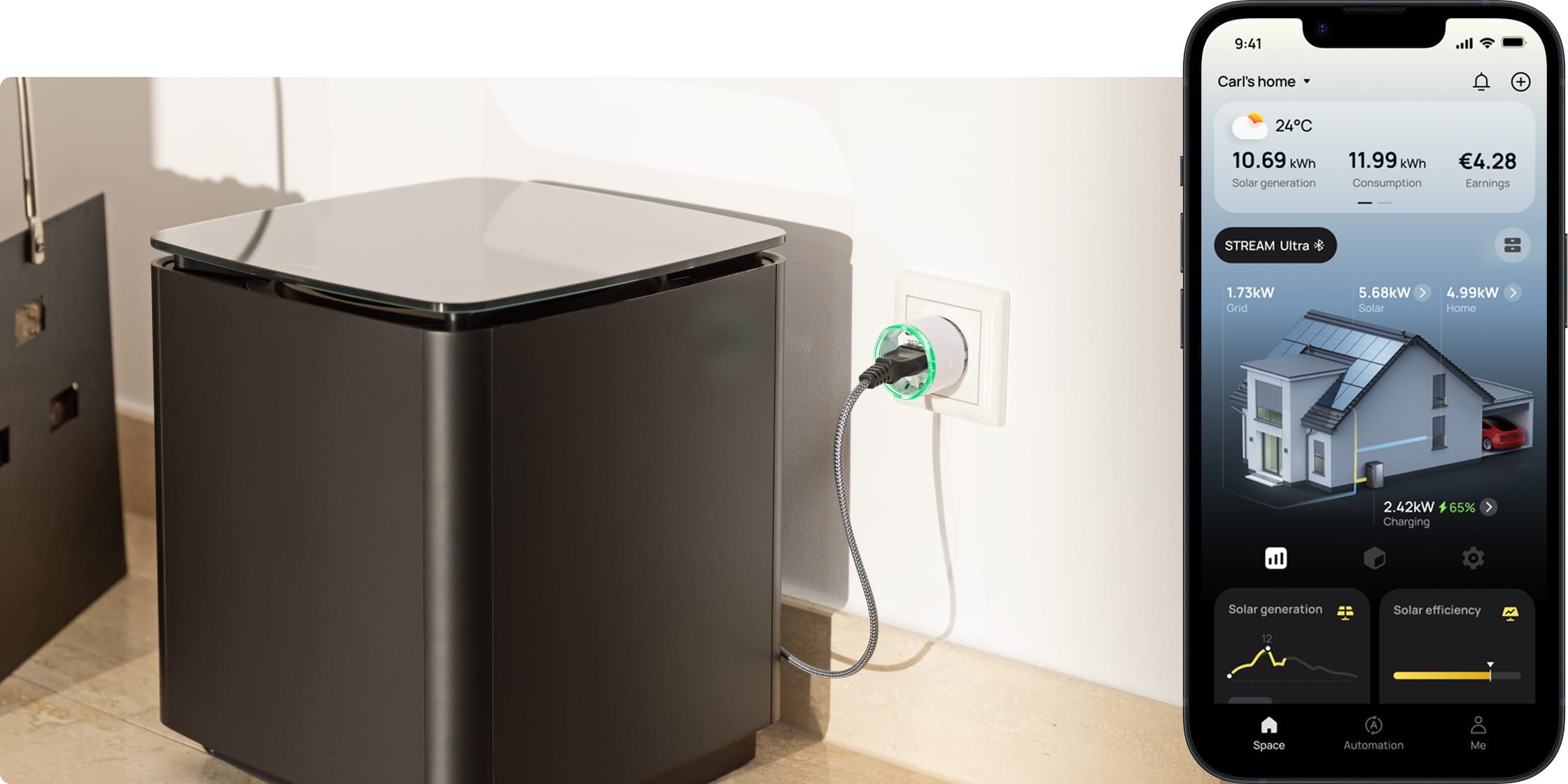 Plug-and-play for effortless setup | Real-time power monitoring for key appliances | Automatic switching based on surplus energy | Intelligent load control with the STREAM Series Plug & Play Solar Plant