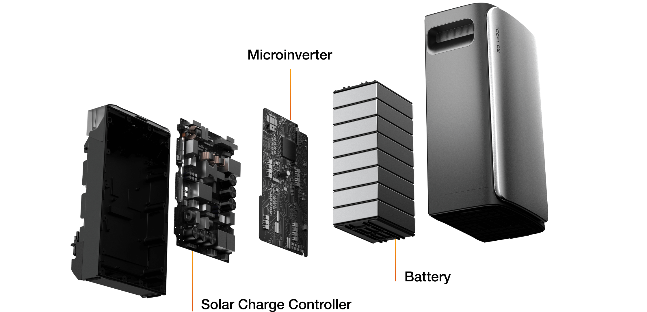 The smart core of the EcoFlow STREAM Plug & Play Power Plant — combining energy storage and a built-in microinverter in one seamless solution.