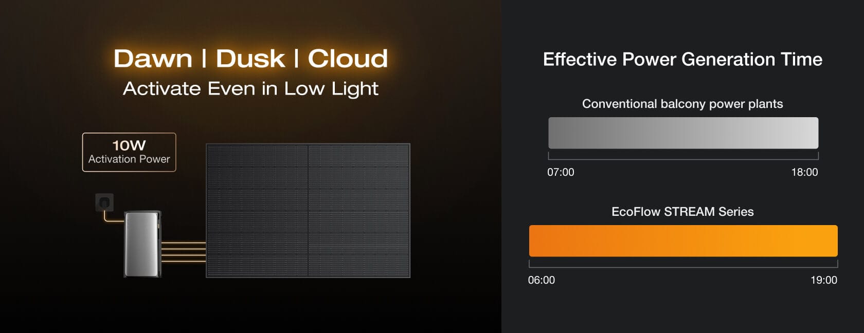 The STREAM Battery uses advanced low-light technology to capture energy from even muted skies, delivering up to one extra hour of solar harvest each day compared to industry averages.