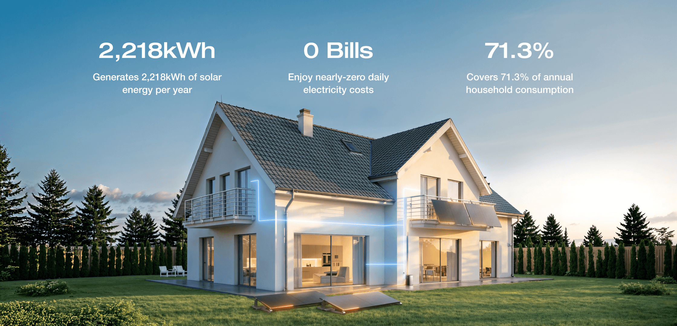 1. EcoFlow STREAM Ultra delivers 2,218kWh of solar energy annually, achieving 71.3% coverage of Germany's average household consumption (3,113kWh/year) through 24/7 solar power supply. Based on the electricity rate of €0.40/kWh, this system provides annual savings of €887. Actual savings may vary depending on usage behavior and regional energy pricing.