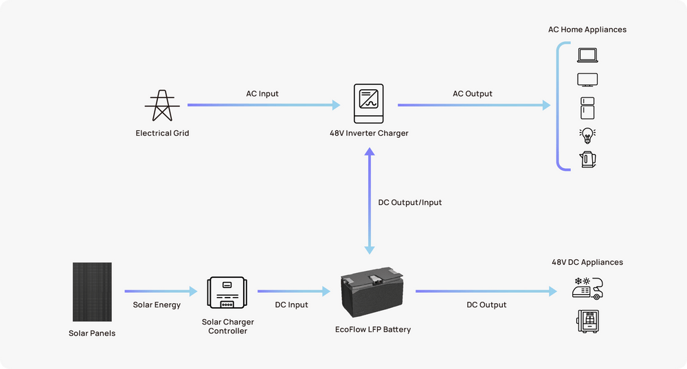· Adapt EcoFlow LFP Batteries for third-party 48V systems.
