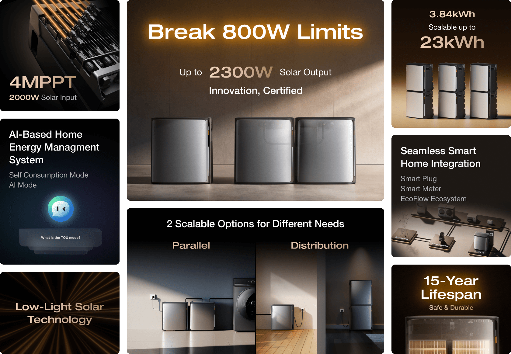 STREAM Ultra X features a battery capacity around 40% higher than industry standards, helping to minimise solar energy waste. With support for up to 2300W AC output, it can power high-demand appliances, making it the most efficient balcony storage solution for solar energy use.