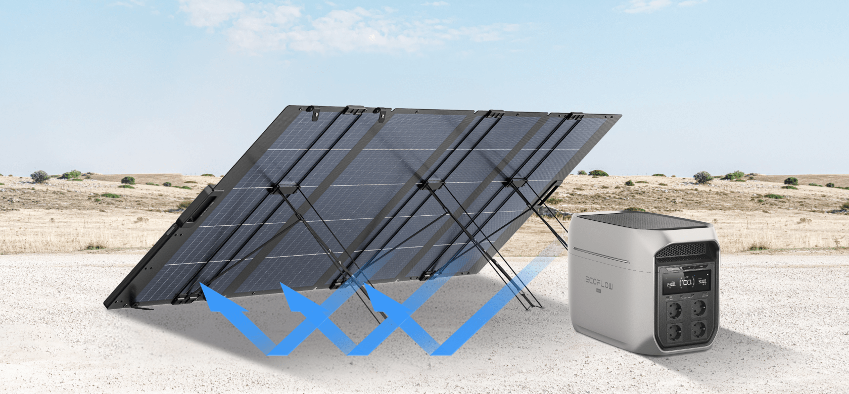 With primary and rear-side panels for ambient light, output power reaches up to 445W under BNPI test conditions, generating more power from the same amount of sunlight compared to traditional monofacial panels. With industry-leading TOPCon solar technology, the portable solar panel achieves a top-level conversion rate of up to 25%, recharging your power station even faster.