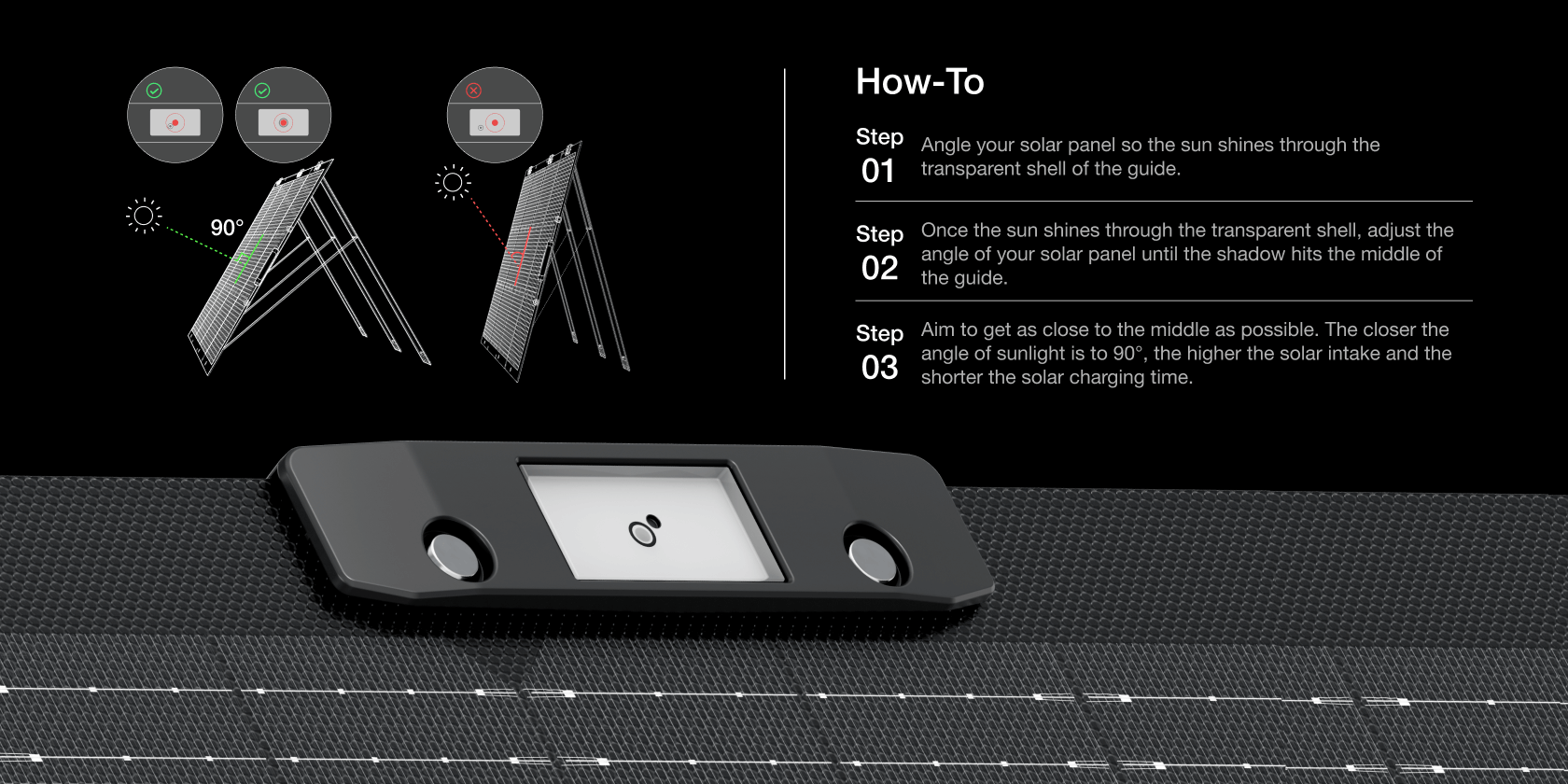 Keep sunlight at a 90° angle and concentrate the sun's rays onto the surface of your solar panel to get the most sunshine at all times.