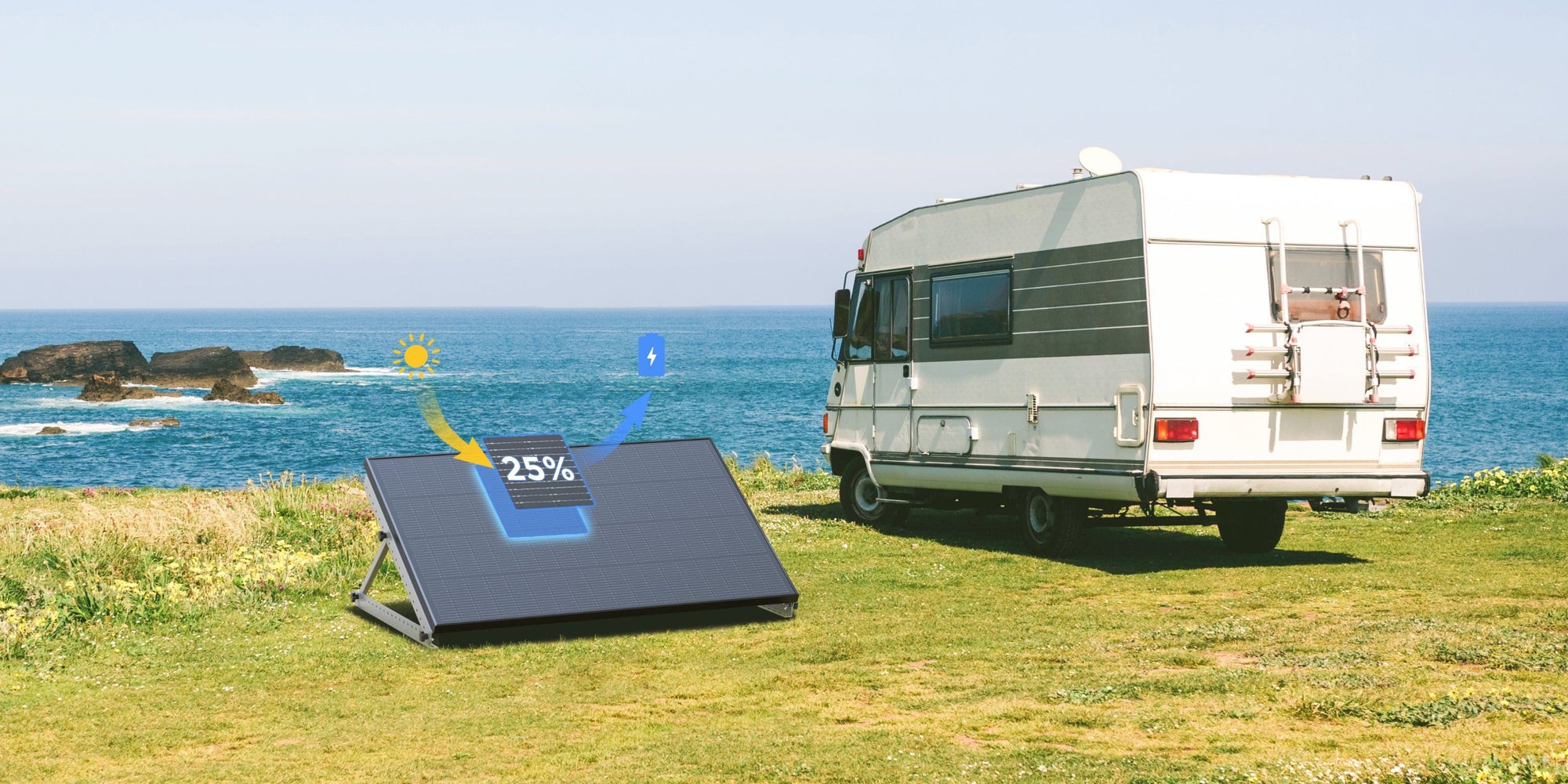With these specially designed Class B solar panels, you can quickly charge your RV house batteries and power your van for days.