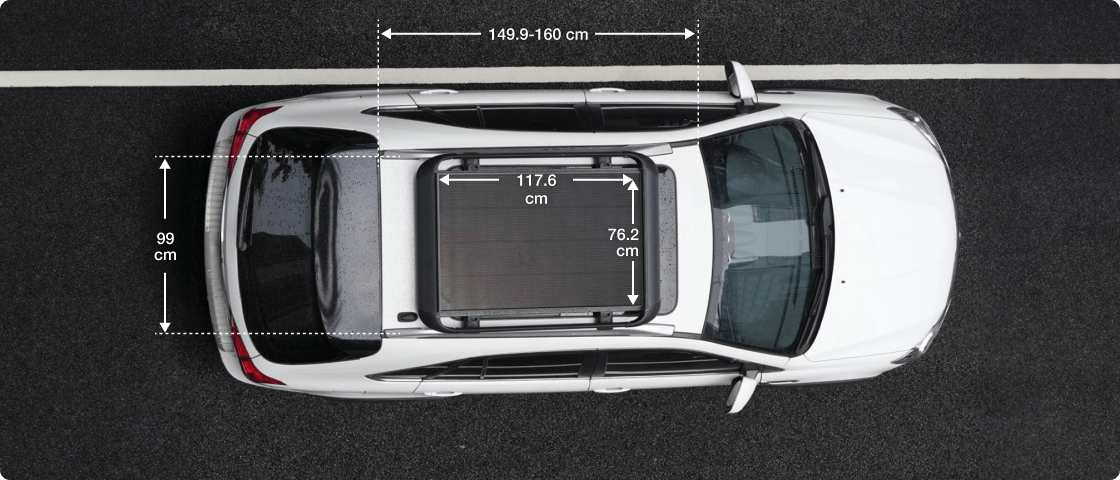 It is perfectly sized for installation on a 149.9-160 cm × 99 cm SUV roof, optimizing solar energy collection.