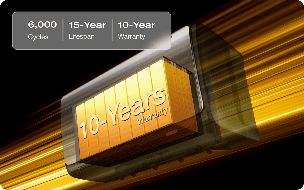Equipped with advanced LFP battery cells, STREAM delivers up to 6,000 deep cycles with 70% capacity retention — lasting up to 3× longer than traditional batteries. That means up to 15 years of reliable use, backed by a 10-year warranty.