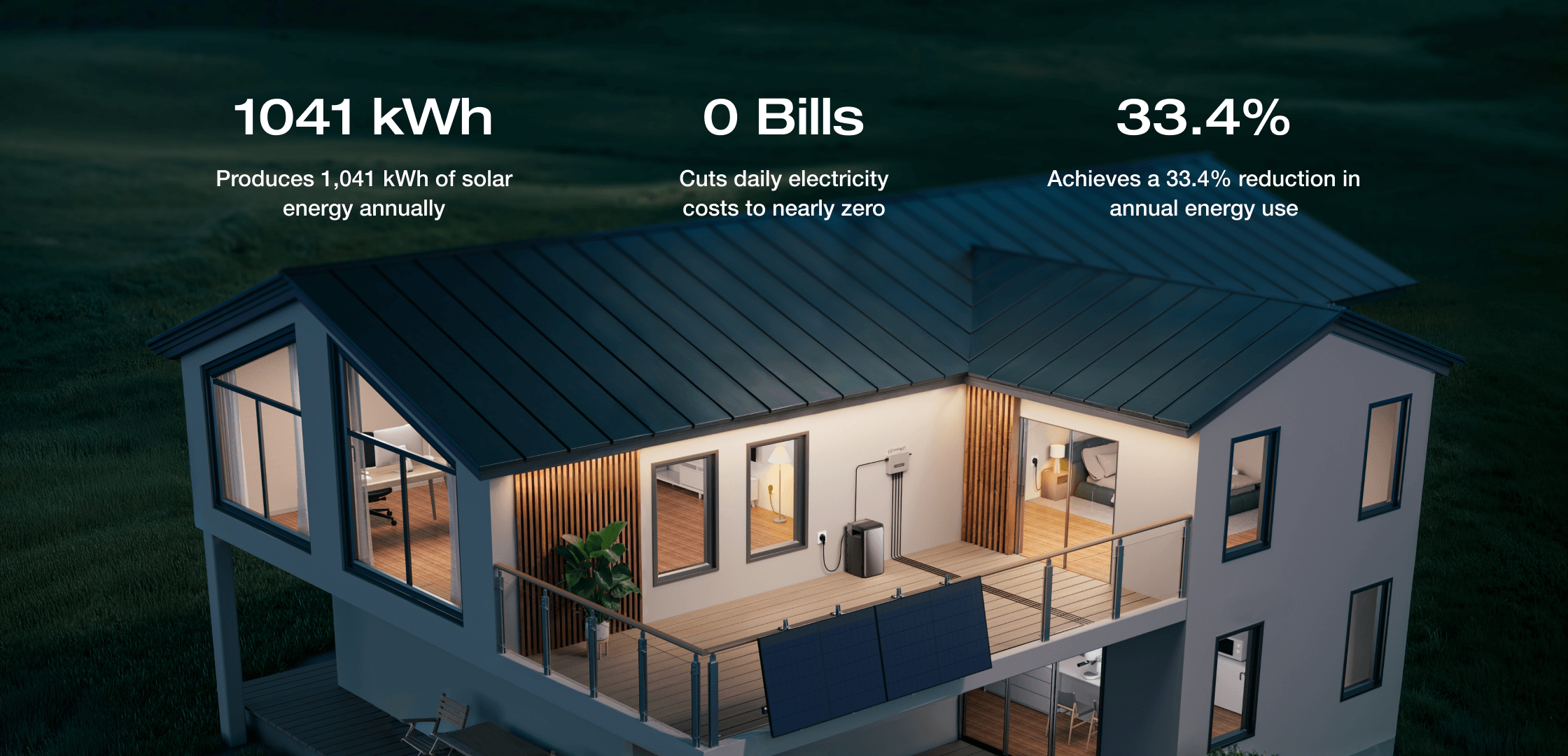 1. EcoFlow STREAM AC Pro harvests 1,041 kWh of solar energy annually. Based on Germany’s average household consumption of 3,113 kWh per year, the system provides 33.4% of total energy needs through continuous day-to-night solar supply. At an electricity rate of €0.33/kWh, this equates to estimated annual savings of € 416. Actual savings may vary depending on consumption habits and energy price fluctuations.