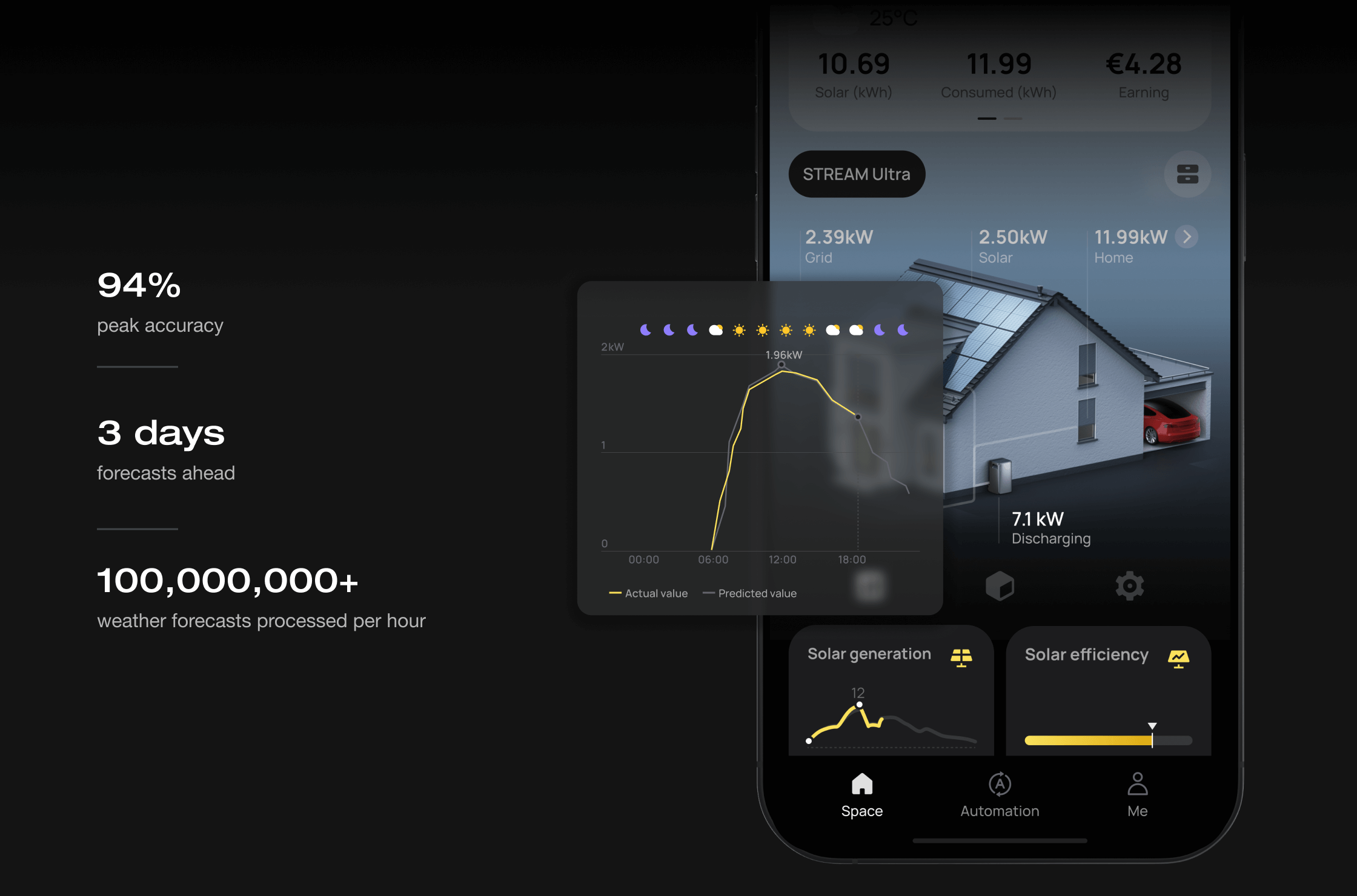 6. The EcoFlow app integrates weather data from Solcast, running over 100 million data operations per hour to deliver forecasts with up to 94% accuracy and horizons of up to three days. (https://solcast.com/)