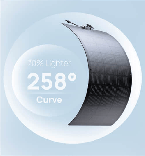 Our flexible solar panel is exceptionally light and 70% lighter than traditional solar panels, making it convenient to move or mount. Easily flexes up to 258 degrees and is able to fit the unique shape of your RV or van without affecting solar input.