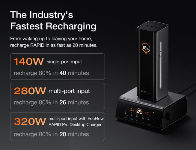EcoFlow RAPID Pro Power Bank (27,650mAh, 300W, 140W Built-in Cable)