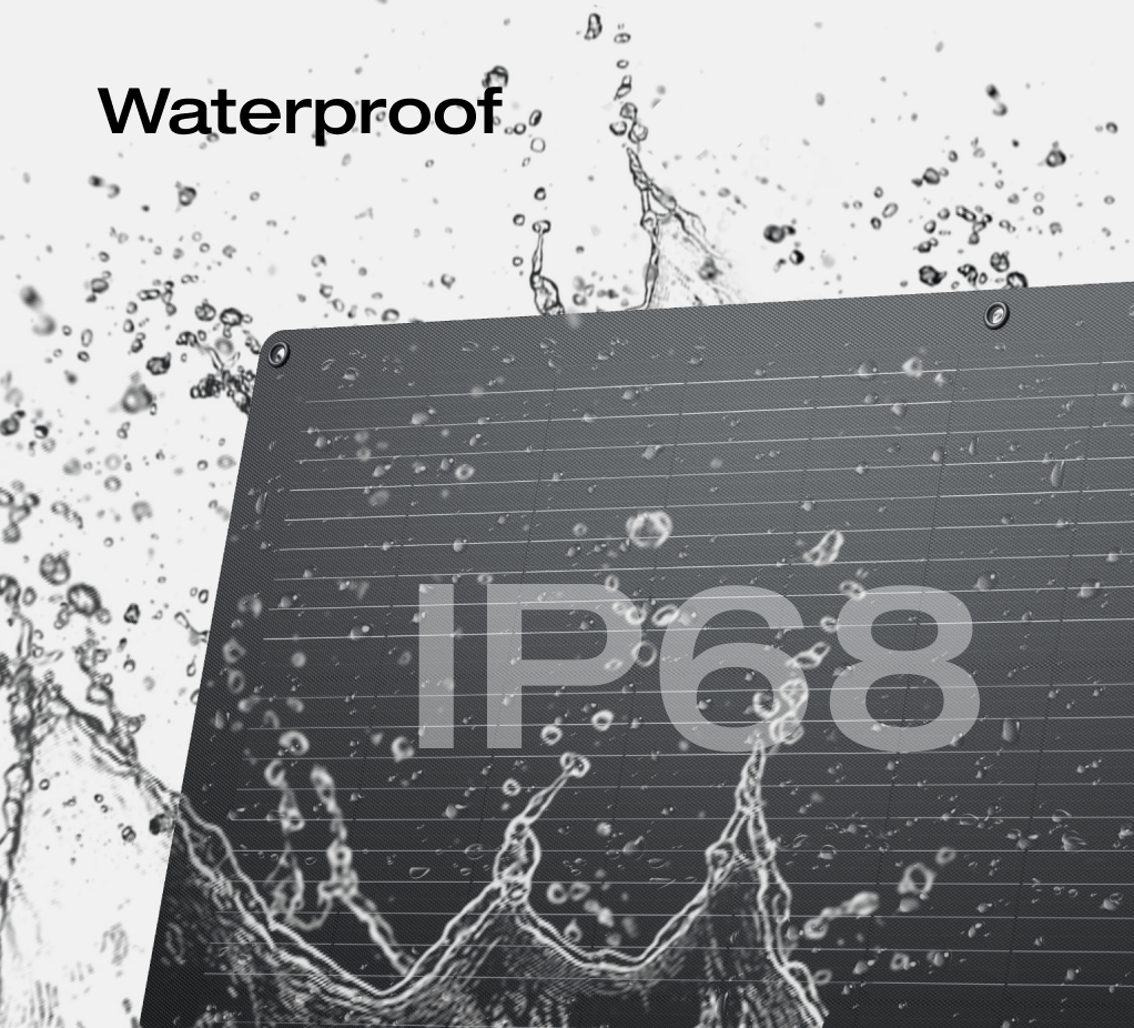 All our solar panels, including the flexible ones, are waterproof, with a rating of IP68. You can even use the rain to wash debris and dust from panels, saving you the job.