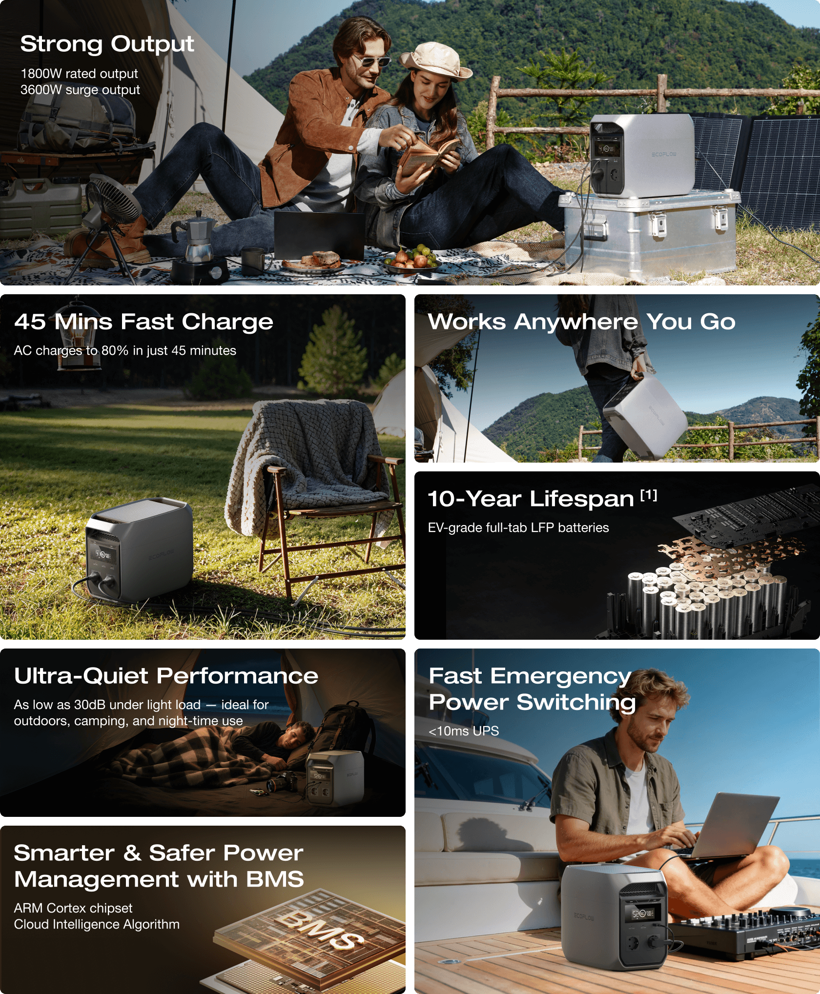 From battery chemistry to structural design, DELTA 3 Classic (1024Wh) is engineered for extreme durability, environmental resilience, and whisper-quiet performance—delivering power you can count on for over 10 years.[1]